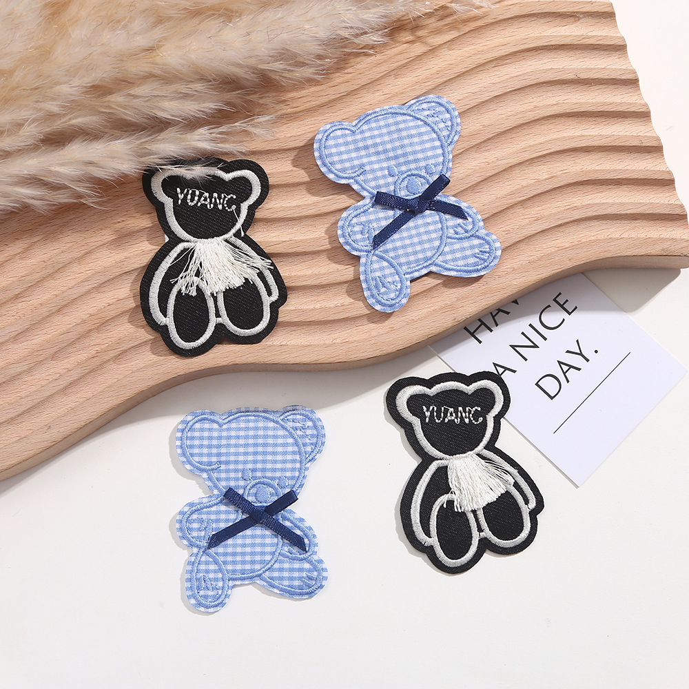 Stiker bordir boneka beruang kartun baru perekat meleleh panas jaket berperekat aksesori pin rambut stiker tempel DIY