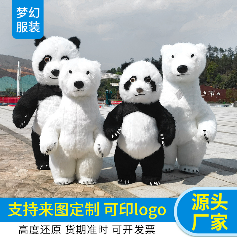 Pakaian tiup boneka beruang kutub, pakaian kegiatan pertunjukan, kostum boneka panda raksasa tiup