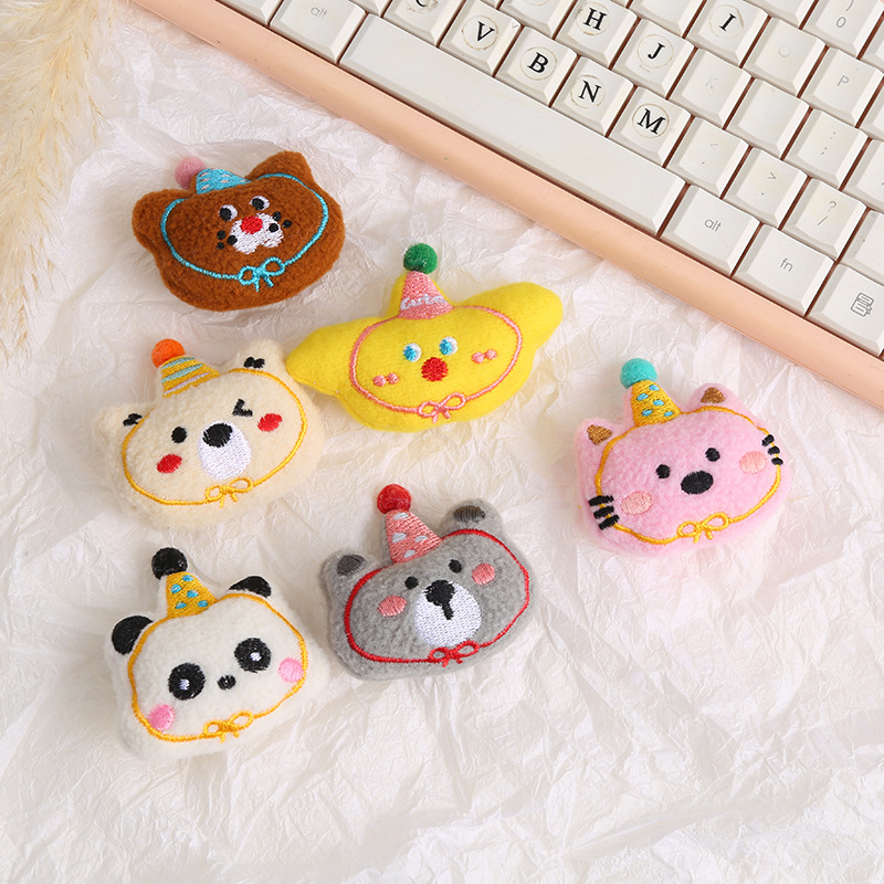 Bros boneka hewan kartun lembut lucu aksesori dekoratif anak-anak tas perempuan pakaian aksesori pin grosir