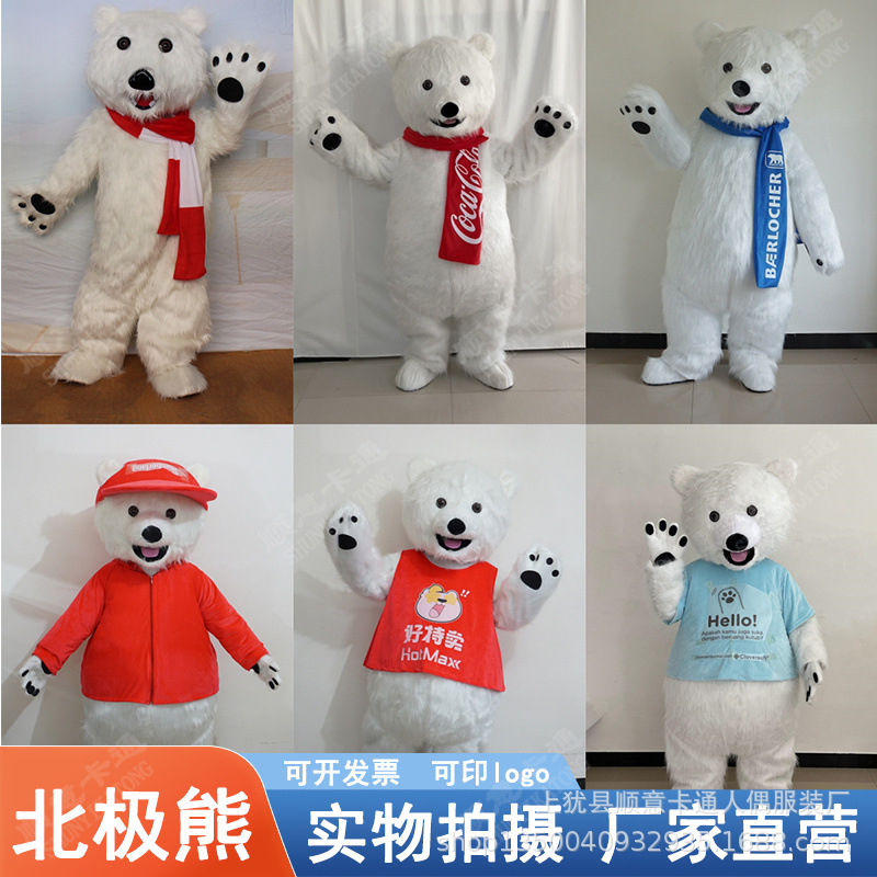 Kostum maskot kartun beruang kutub untuk pertunjukan manusia, pakaian properti, kostum maskot, maskot Coca-Cola, beruang putih.