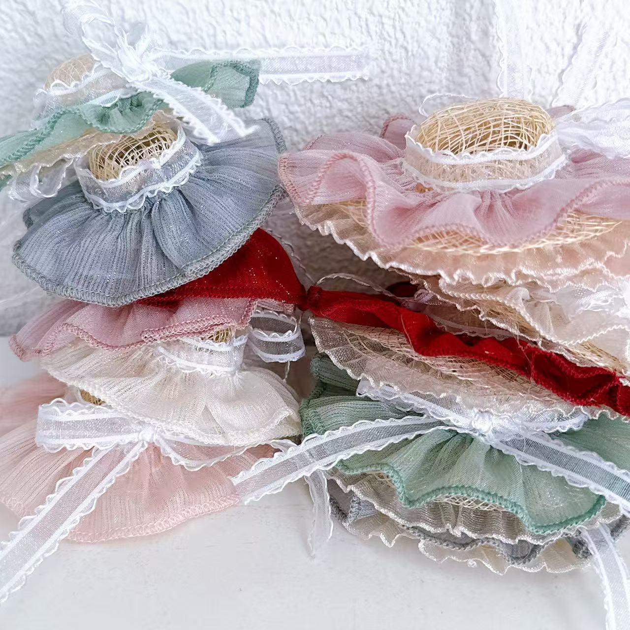 Aksesoris Boneka Boneka Topi Matahari Mini Pinggiran Renda Jerami Topi Kasa Pelindung Matahari Lucu Buatan Tangan Produk Buatan Tangan