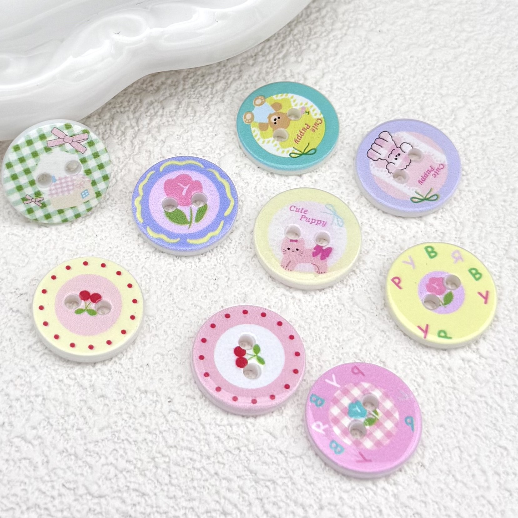 Kancing Kartun Lucu Kancing Warna-Warni Cherry Kotak-kotak Puppy Pita Kupu-Kupu Aksesoris DIY Jepit Rambut Jepit Rambut Dekoratif Baju Boneka