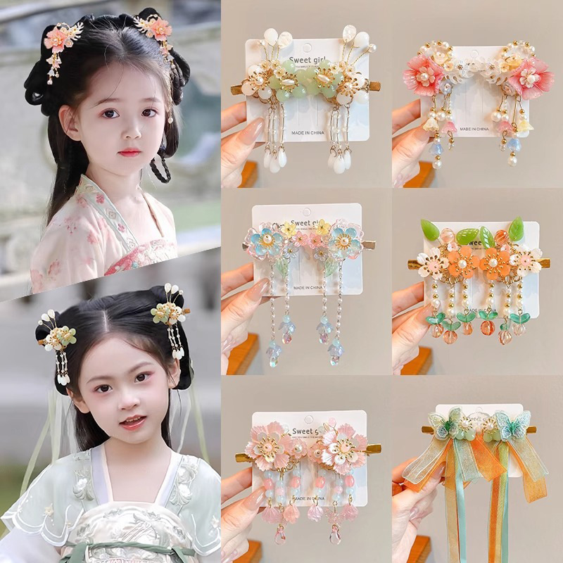 Aksesori Rambut Pakaian Hanfu Anak-anak Hiasan Kepala Pakaian Hanfu Anak Perempuan Jepit Rambut Rumbai Gaya Kuno Anak Perempuan Super Peri Bergoyang Aksesoris Kostum Kuno