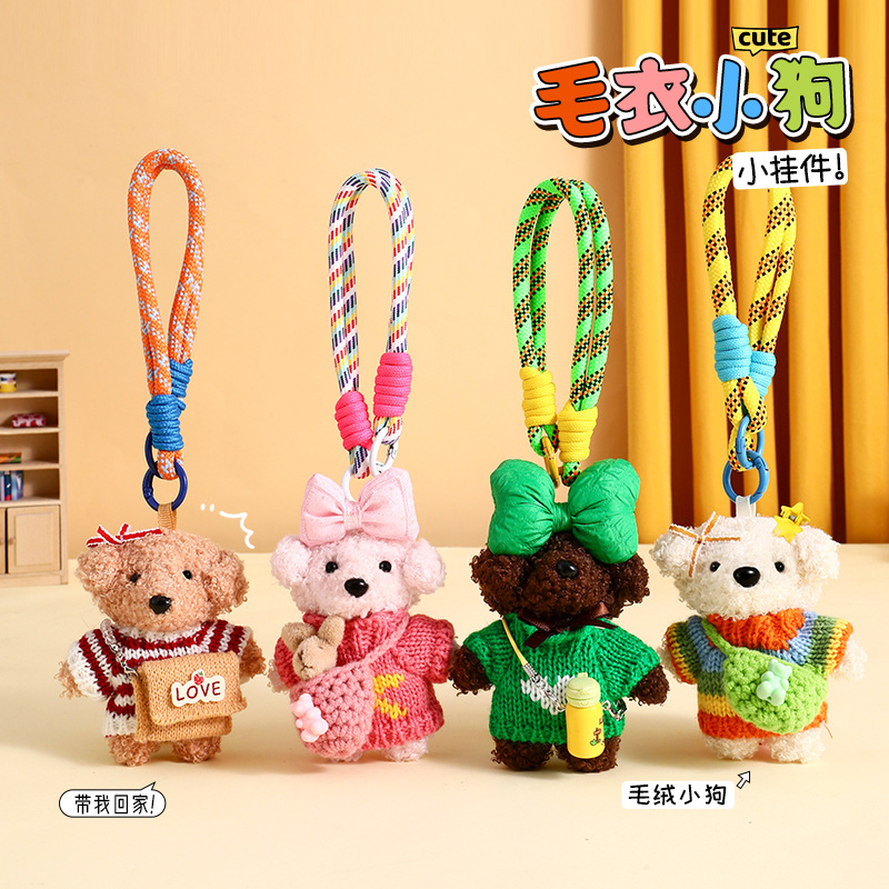 Gantungan Kunci Lucu Sweter Boneka Boneka Beludru Anak Anjing Kecil Boneka Liontin Tas Sekolah Aksesoris Tas Punggung Pasangan Hadiah