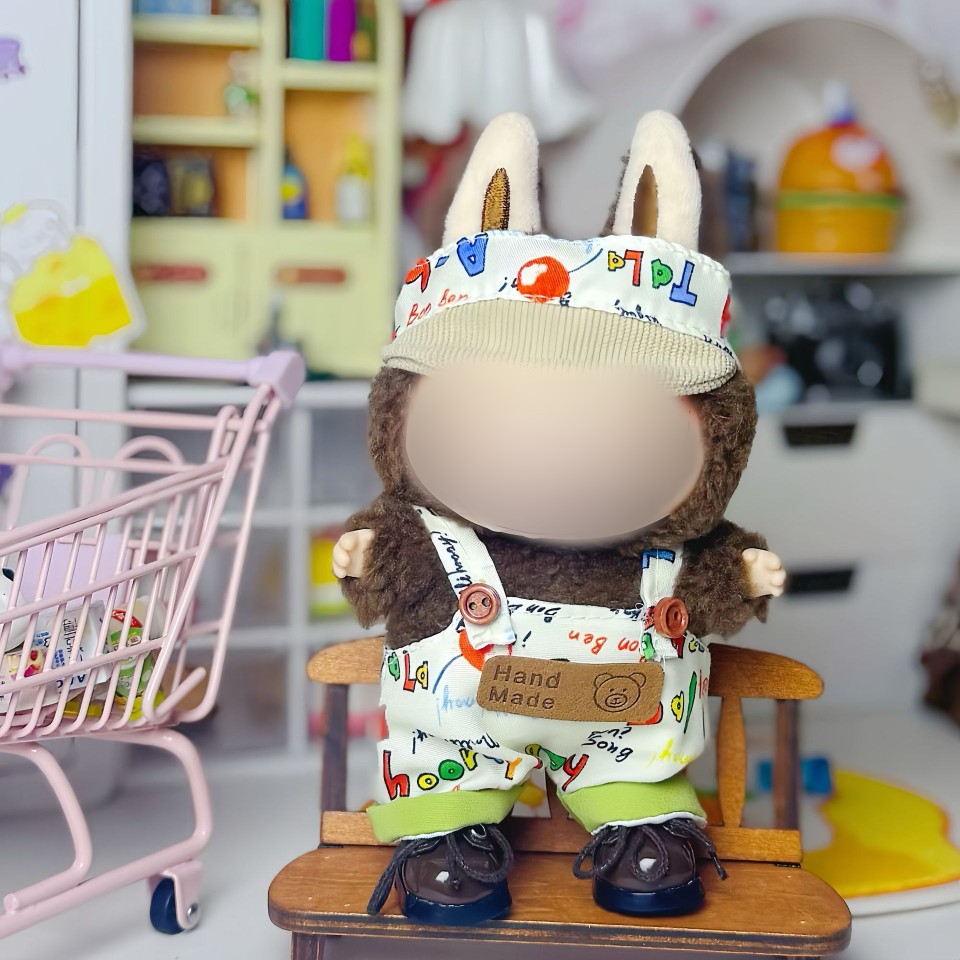 Pakaian Bayi Labubu Generasi Satu Dua Tiga Tiga Baju Atasan Celana Bertali Beruang Kecil Lucu Dopamin Baju Gantung Boneka Labu