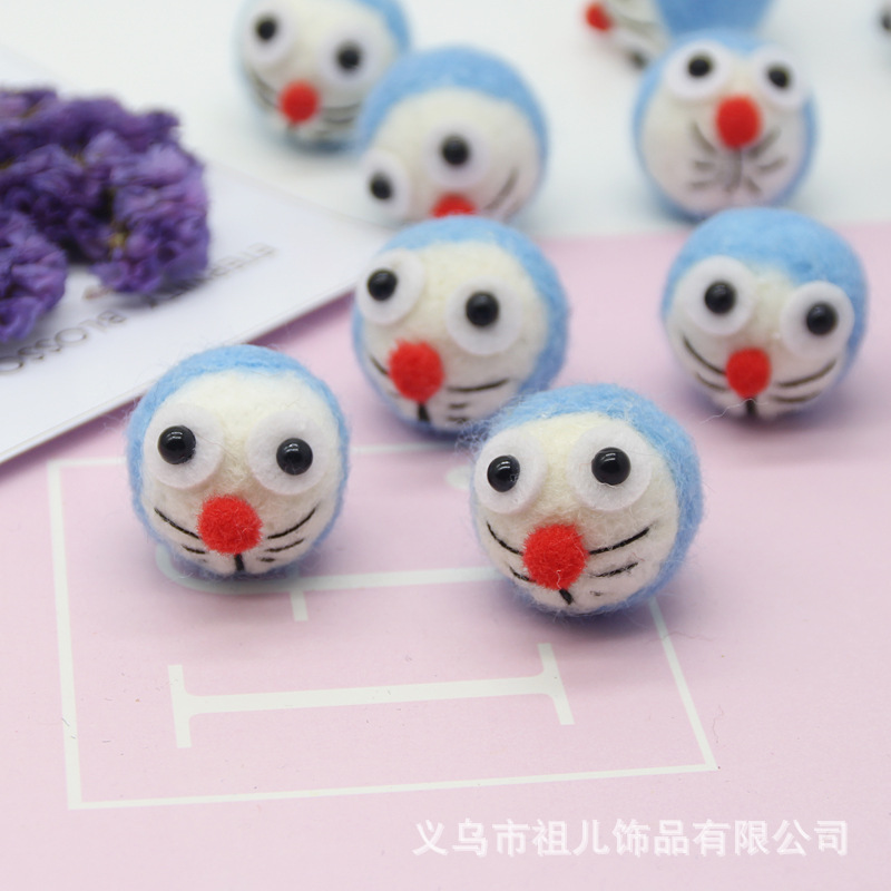 Paket bahan diy pokes kain wol hewan kartun aksesori rambut Doraemon bros kucing Jingdang
