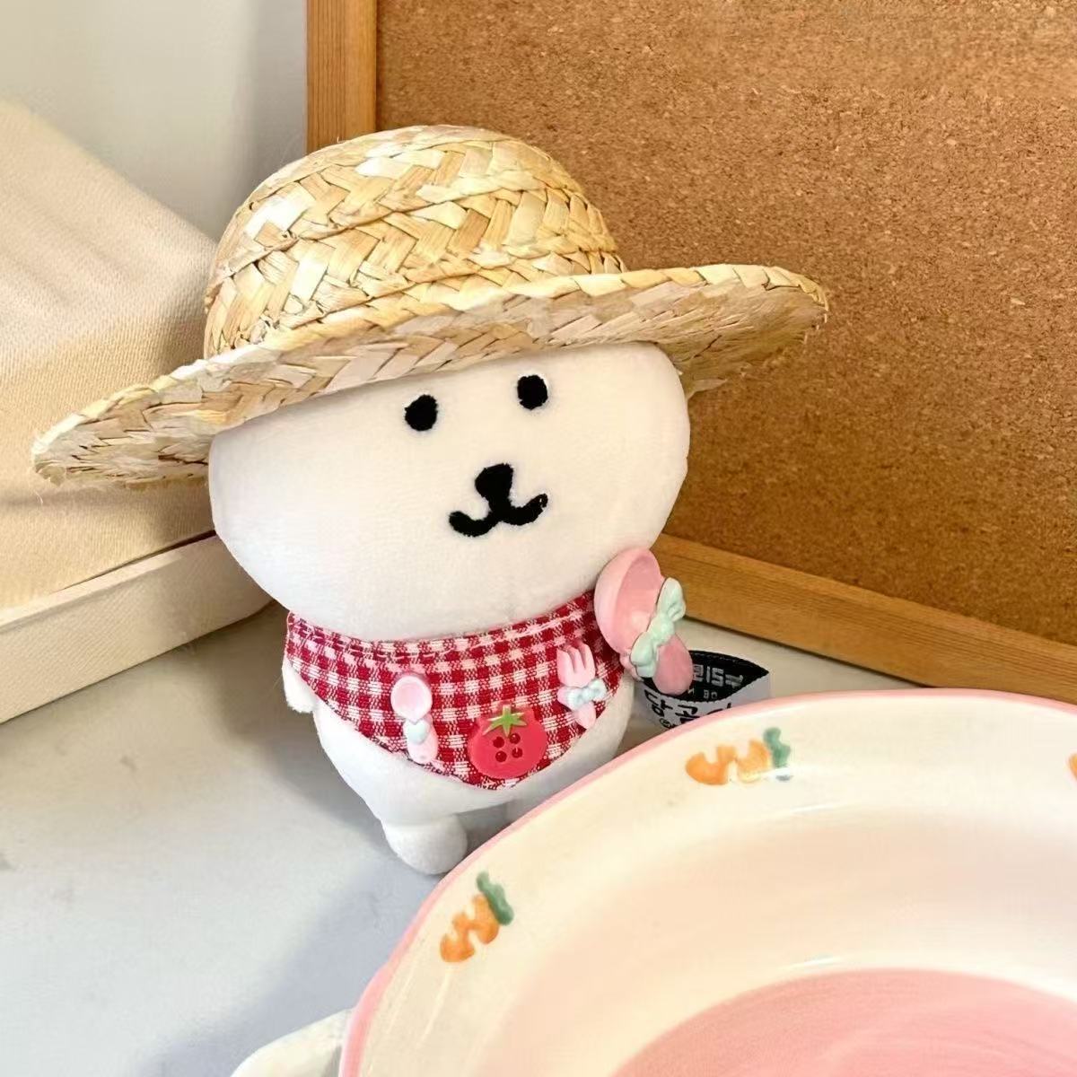 Set Tomat Nasi Kering Asli Aksesori Bayi Topi Jerami Topi Jerami Hiasi Beruang Mengejek Diri 10CM Pakaian Boneka Kapas