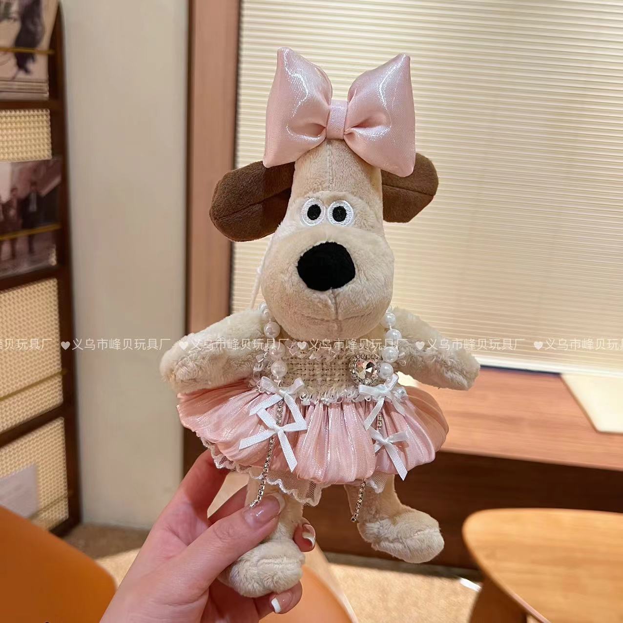 Kartun lucu rok anjing perempuan liontin tas ornamen sweater boneka boneka gantungan kunci boneka wol mewah dalam stok