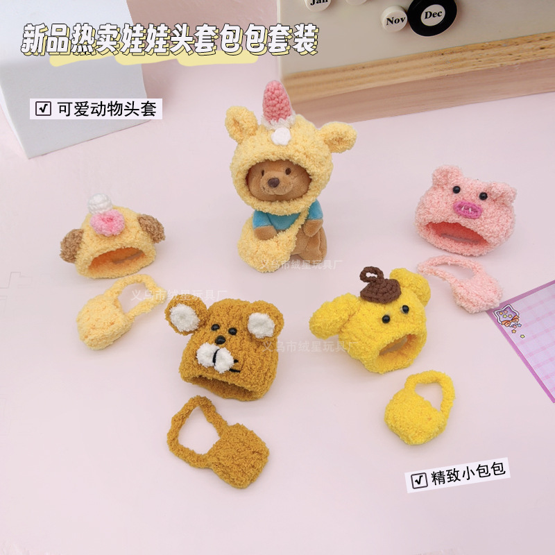 Set Dua Potong Tas Penutup Kepala Kartun Topi Kecil Boneka Kreatif Set Aksesori Dekorasi Boneka DIY