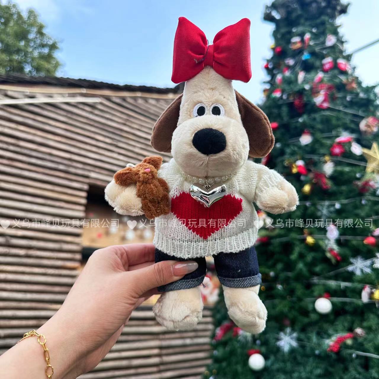Populer boss anjing kartun tas liontin ornamen sweater boneka lucu boneka gantungan kunci wol mewah