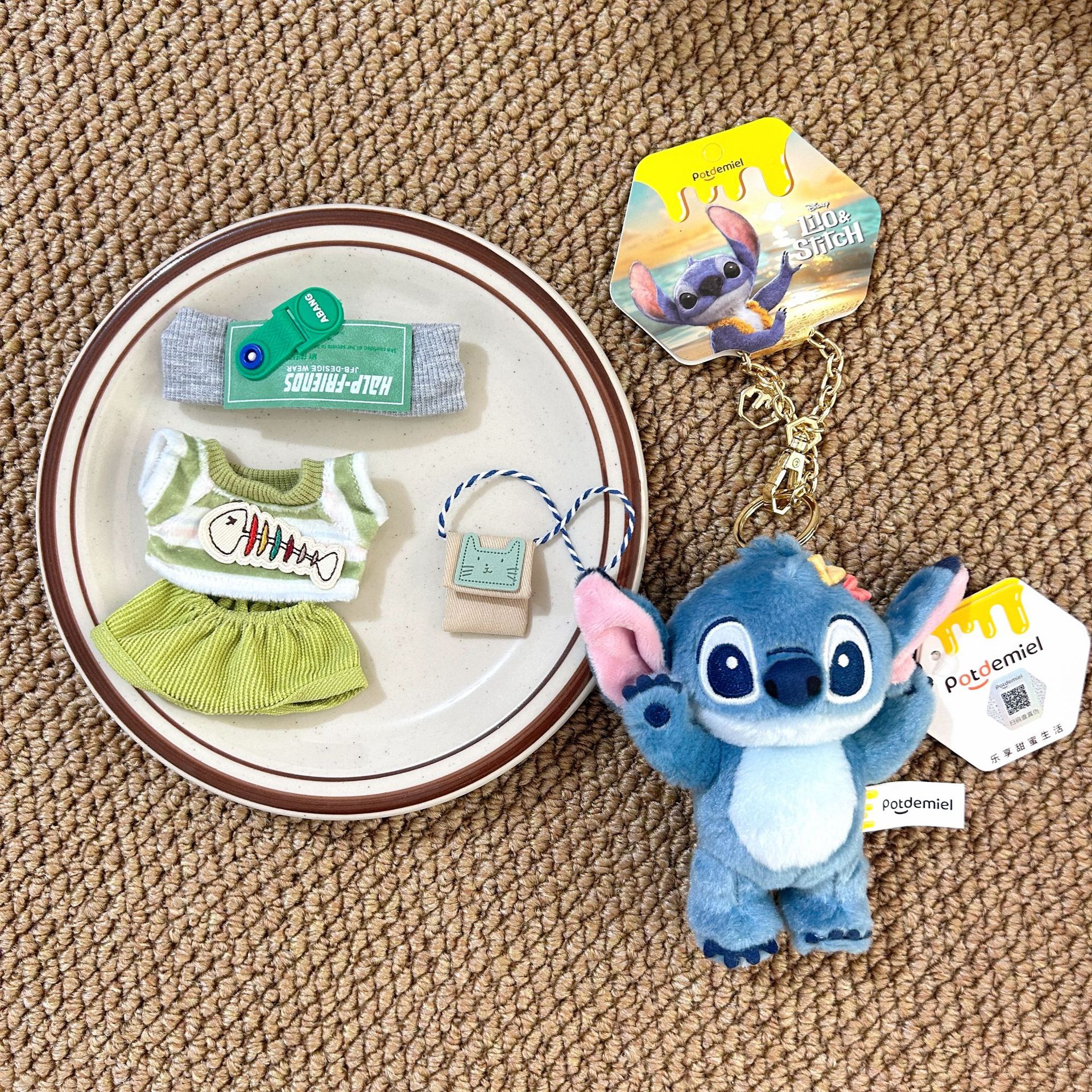 Gantungan Kunci Gantungan Tas Stitch Bayi Bintang Set Liontin Boneka Bulu Asli Set Pakaian Boneka