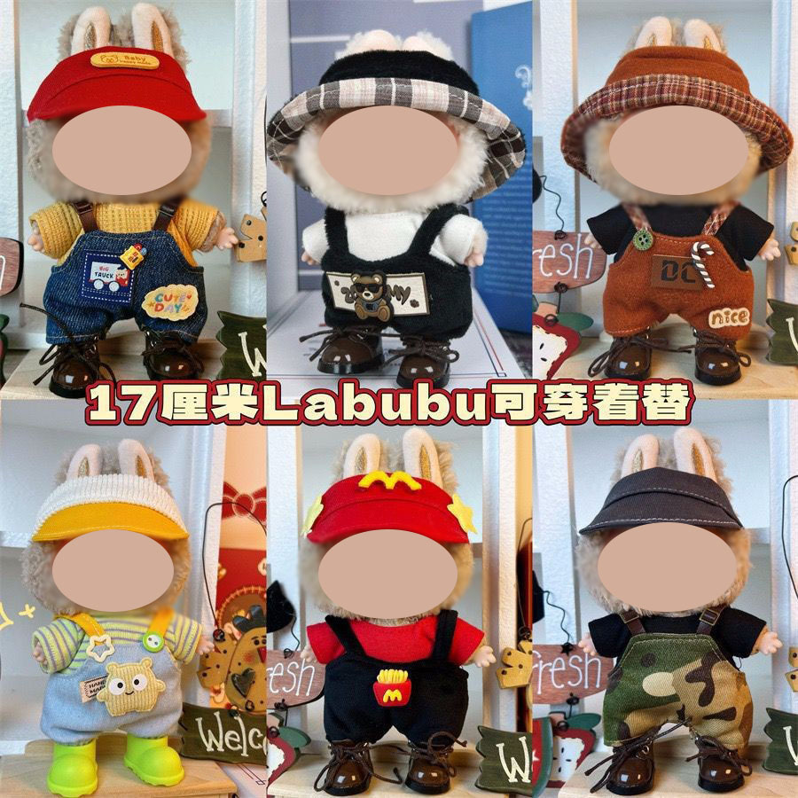 Labubu Pakaian Boneka Kain Rab Berenamel 17cm Boneka Lucu Pakaian Kasual Gaun Mainan Beludru
