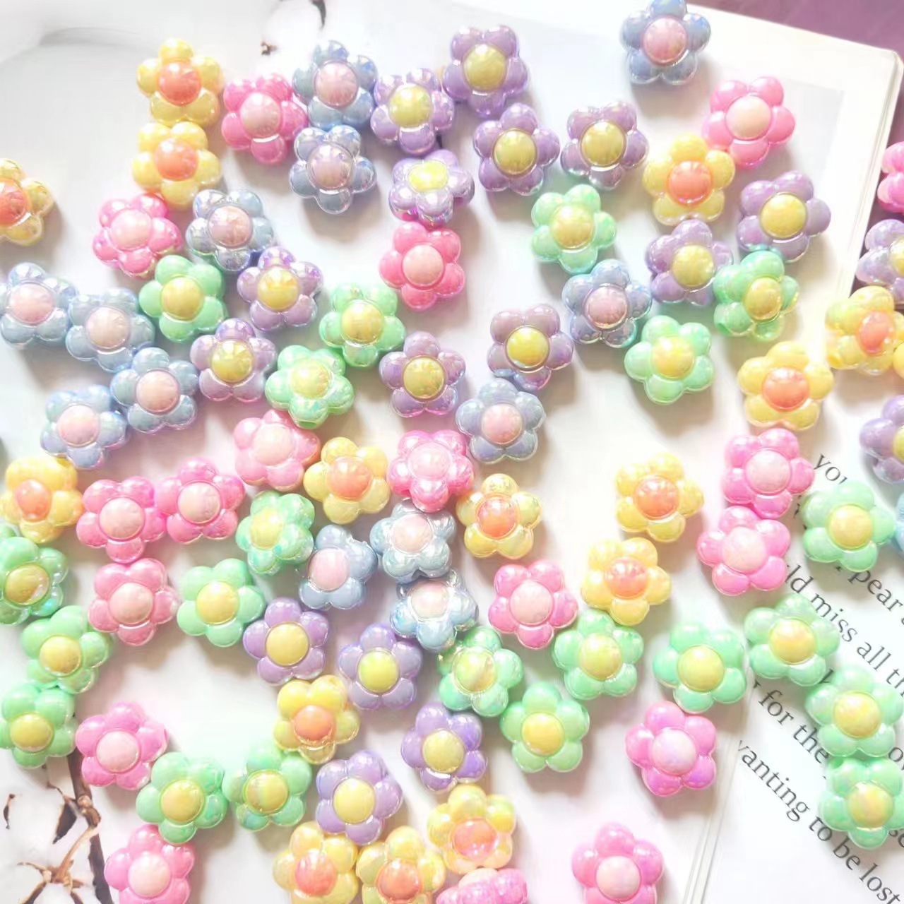 Akrylik Warna-warni Berlapis AB Warna Dua Warna Bunga Matahari DIY Manik-manik Buatan Tangan Aksesori Gantungan Kunci Ponsel Grosir