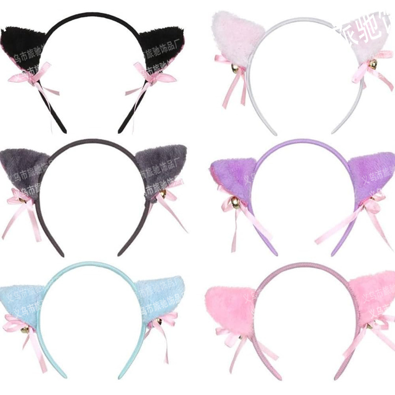 Bando telinga kucing lintas batas, bel kucing busur hiasan kepala alat peraga cosplay aksesoris pakaian