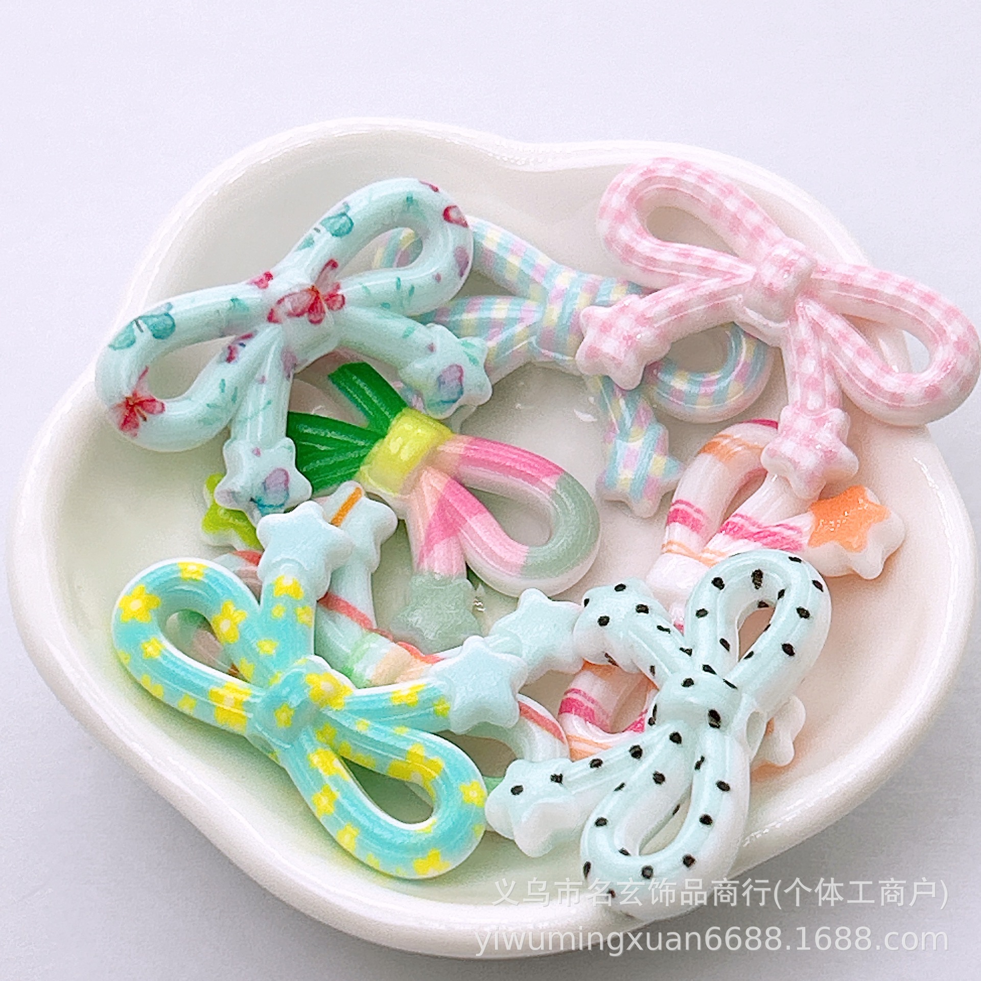 Aksesoris Gantungan Kunci Ponsel DIY Manik-Manik Manik Pita Kupu-Kupu Bintang Lubang Vertikal Segar Bermotif 34*20mm