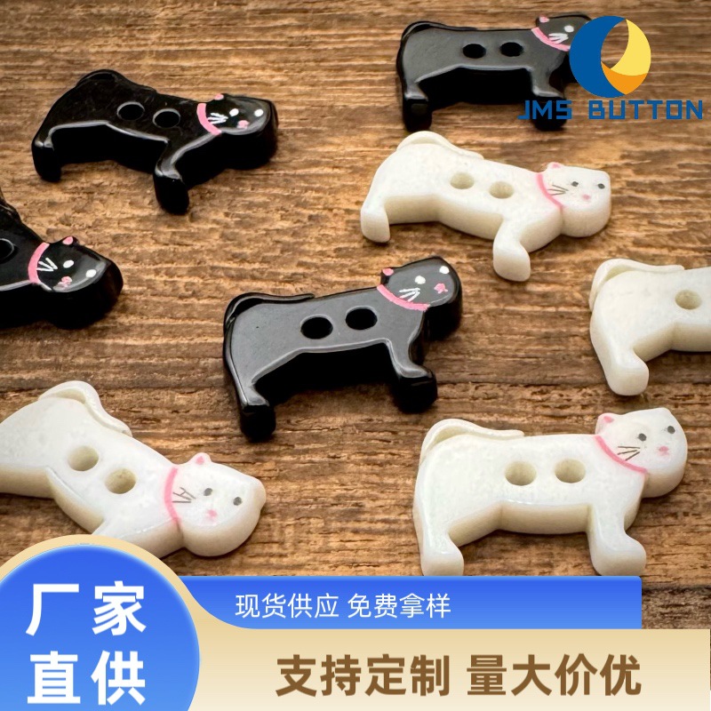 Kancing Kucing Hitam Dan Putih Lucu Ukiran Anak-anak Kartun Buatan Tangan DIY Dekorasi Aksesoris Sweater Jaket Cheongsam Kancing