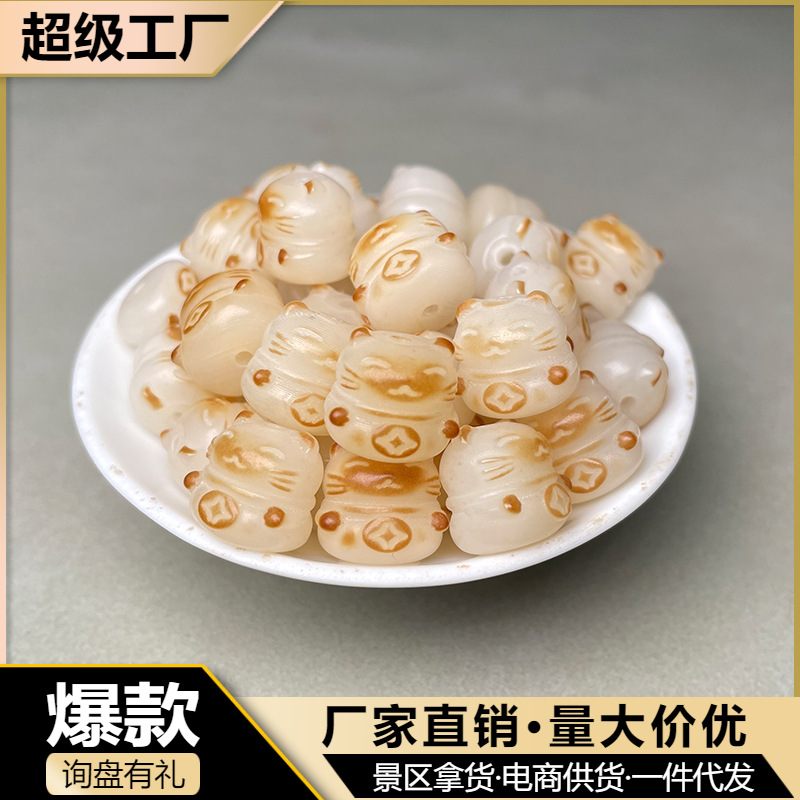 Aksesori gelang manik-manik Buddha bagian DIY ukir Aksesori kucing keberuntungan panggang arang akar Bodhi putih alami grosir