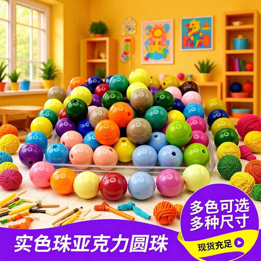 Manik-manik akrilik bulat warna solid, lubang lurus, manik-manik plastik lepas, aksesoris rantai ponsel, DIY, manik-manik buatan tangan