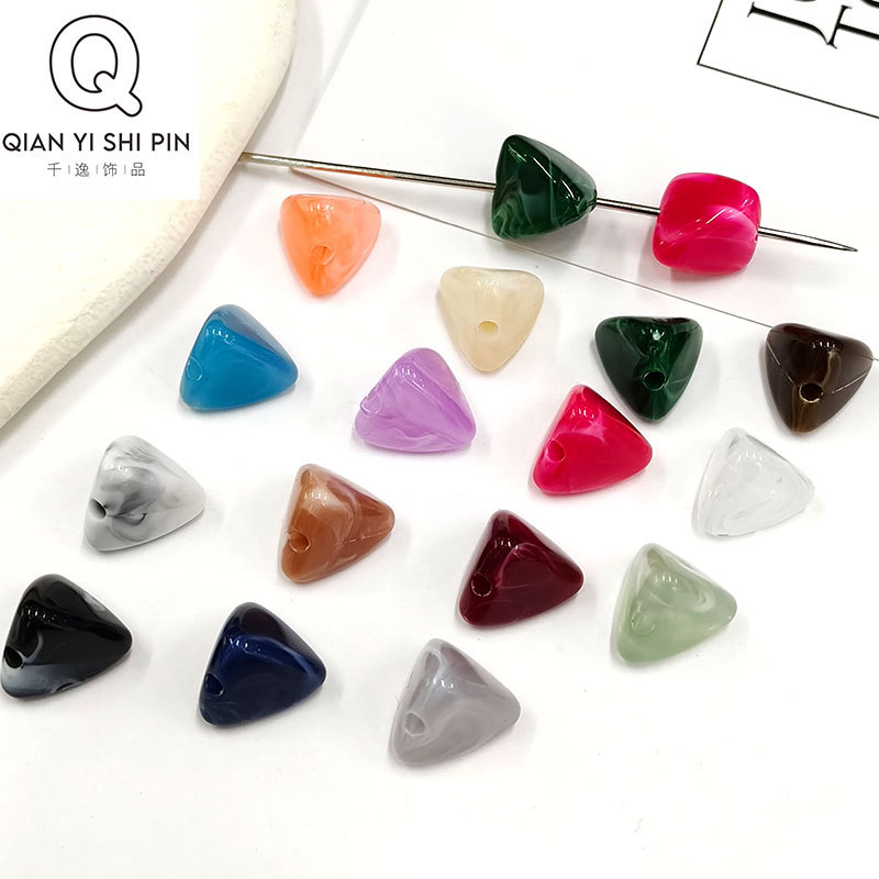 Akrilik 13mm tiga dimensi segitiga lubang lurus bahan manik-manik DIY ponsel cangkang gantungan kunci gelang Aksesori anting-anting