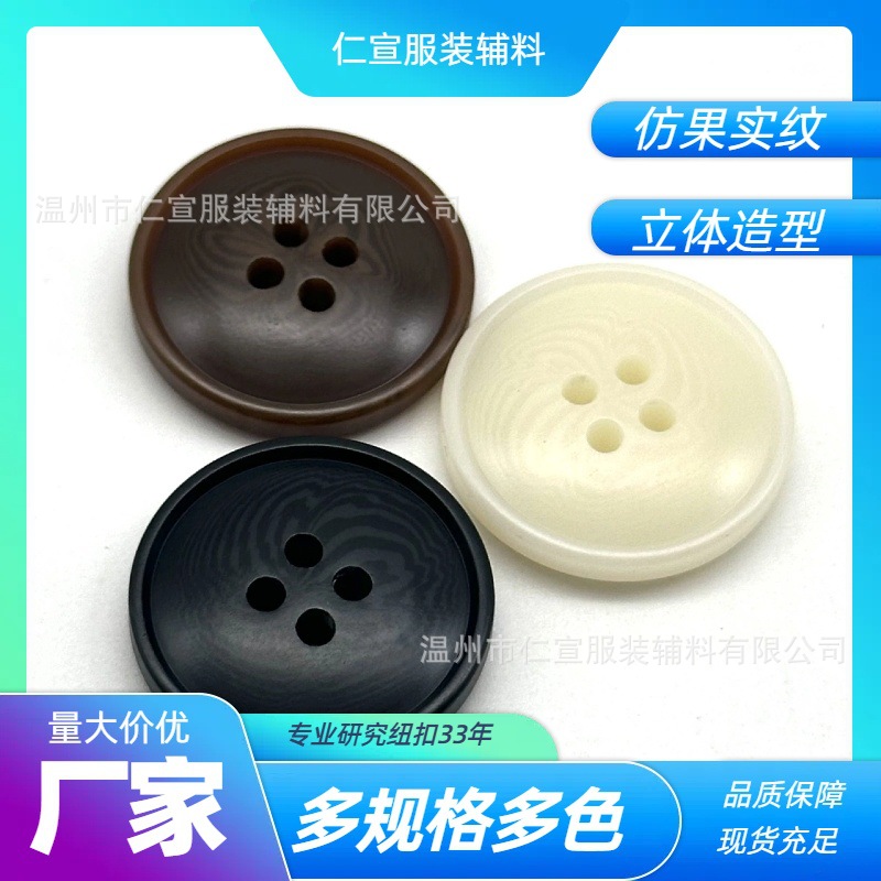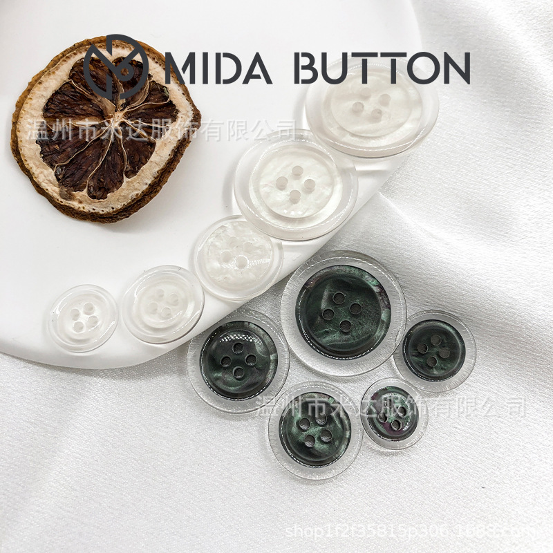 Pabrik langsung bulat resin mantel kancing jas hujan hitam dan putih gradien sesuai mantel sweter Empat Mata dekoratif gesper
