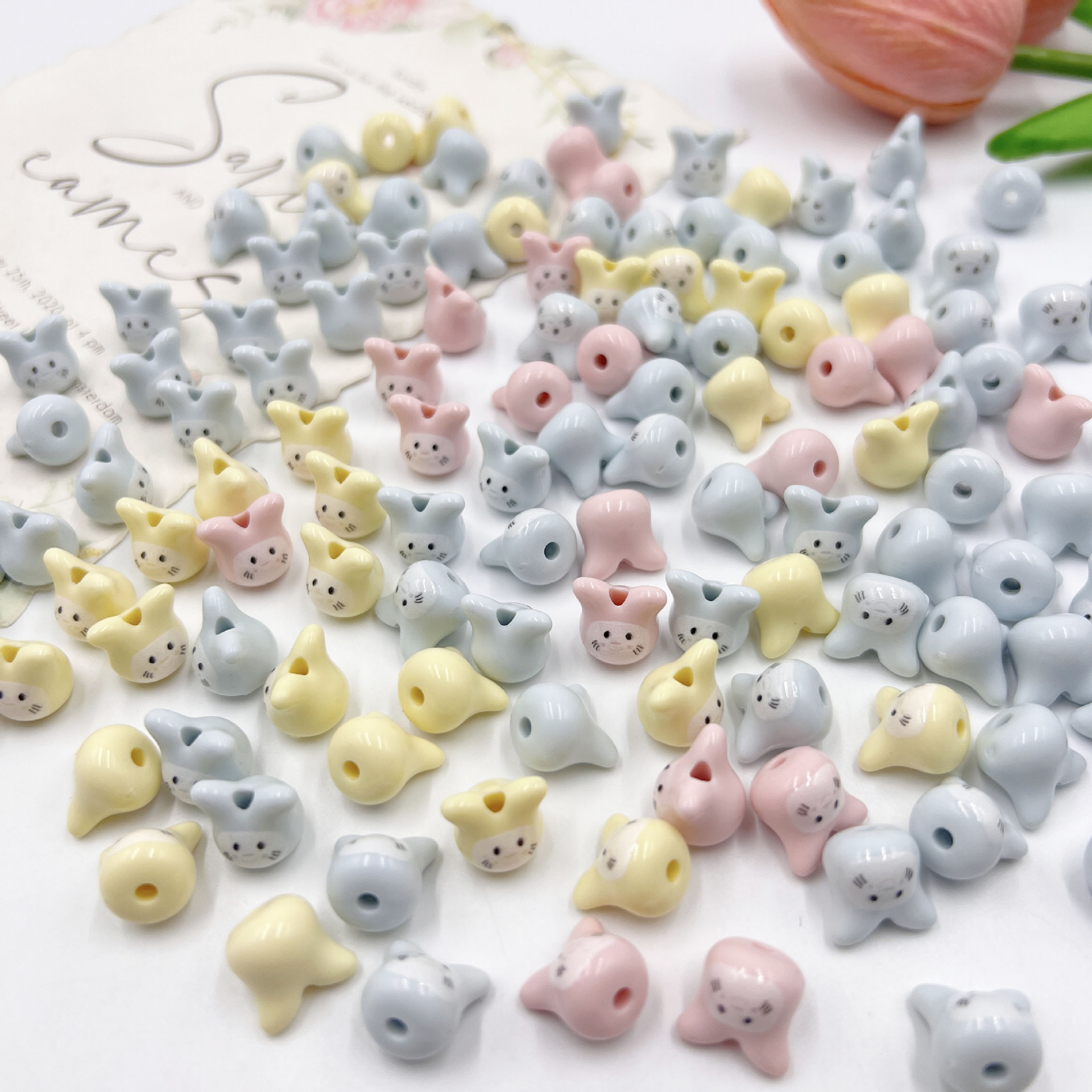 Aksesoris Perhiasan Buatan Tangan DIY Manik-Manik Kelinci Kecil Tiga Dimensi Kartun Lucu Gelang Manik-Manik Lubang Lurus Bahan Kalung