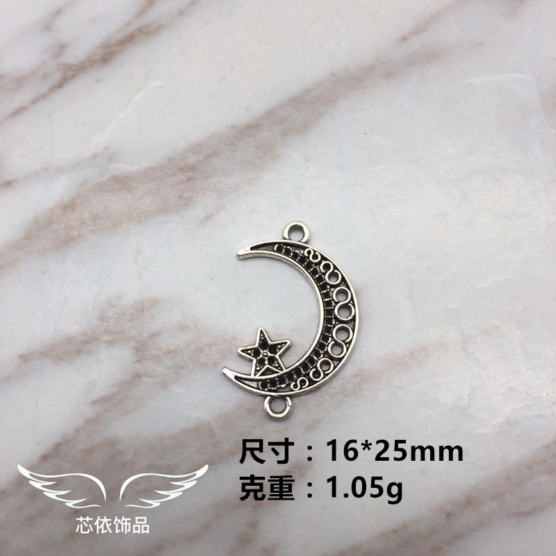 Pabrik langsung diy buatan tangan Korea bintang bulan kalung bahan perak kuno paduan perhiasan aksesori Bulan Bintang grosir