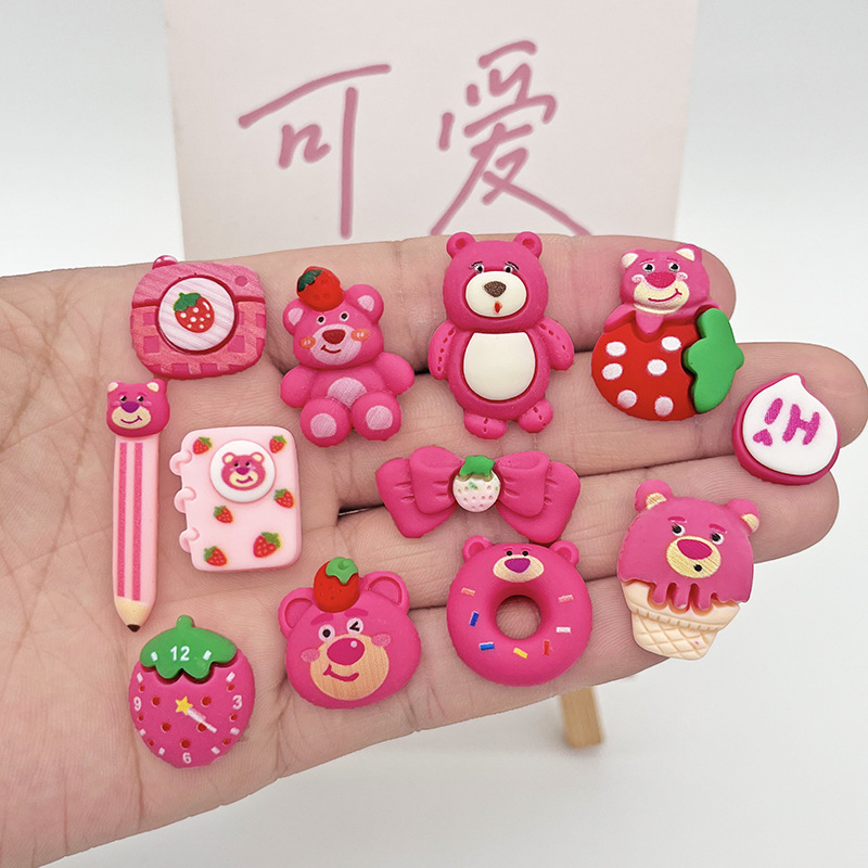 Tambal resin seri Beruang stroberi kartun bando jepit rambut diy dekorasi mobil Aksesori lem krim cangkang ponsel