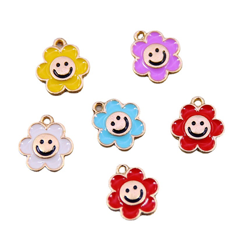 Diy gaya Korea bunga kartun drop minyak buatan tangan wajah tersenyum bunga fashion ponsel rantai aksesoris gantungan kunci Aksesori Anting