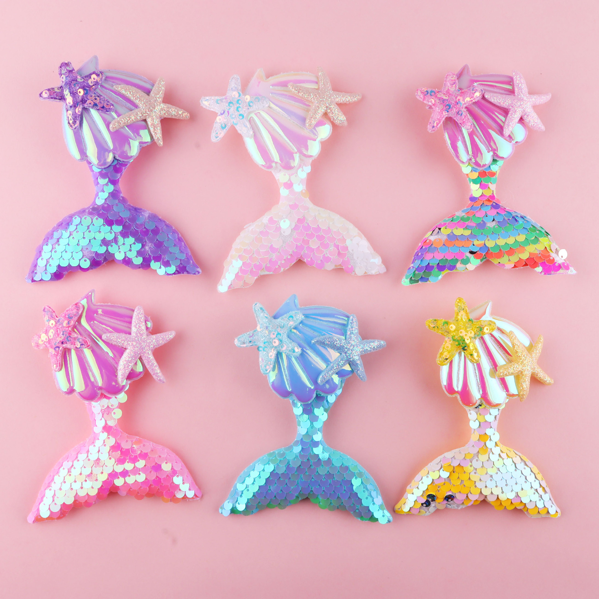 Aksesoris putri duyung DIY warna-warni, glitter DIY, kerang, bintang laut, kain katun isi kapas, tas pakaian, aksesoris setengah jadi