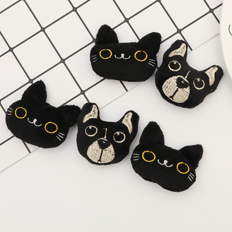 Aksesori bros mainan bulu gaya Korea lucu hitam anjing hitam aksesori mainan kucing sampel aksesori pakaian grosir aksesori pakaian