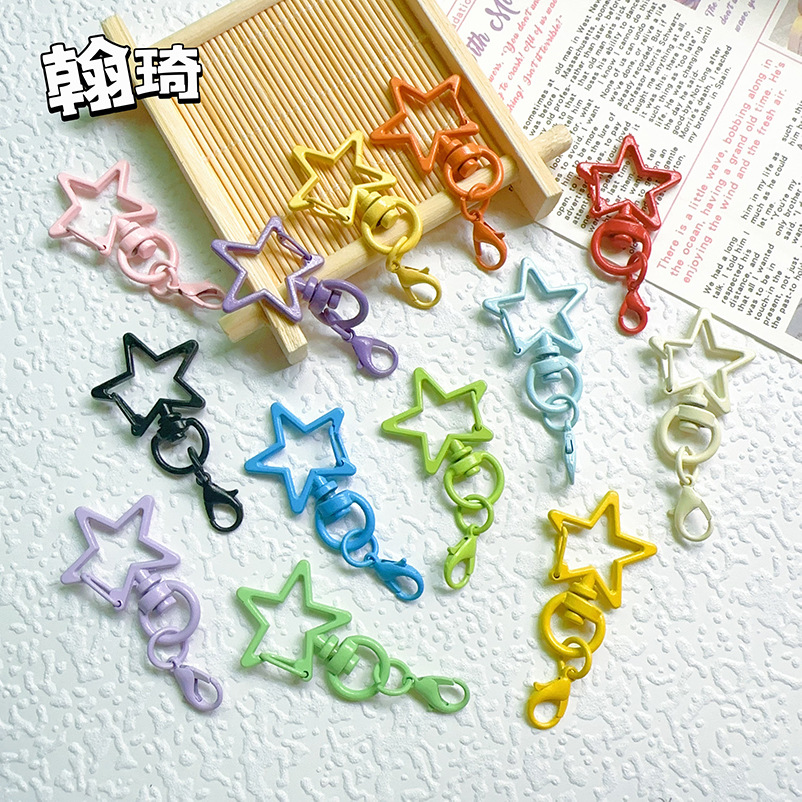 Cat Warna Warna-warni Bintang Lima Sudut dengan Gesper Lobster Kecil Aksesoris Perhiasan DIY Gantungan Kunci Berputar Grosir Gantungan Boneka