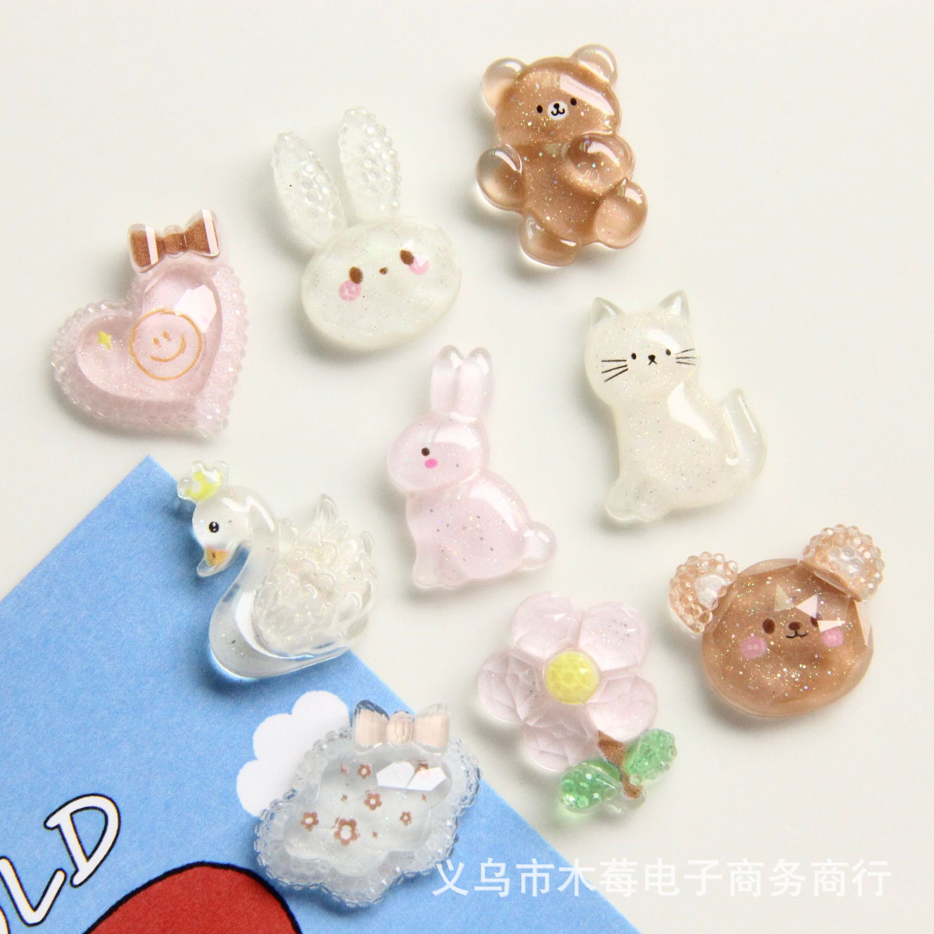 Aksesori Kartun Berkilau Karet AB Aksesori Perhiasan Awan Putih Beruang Kecil Warna Kopi Susu Swan Kelinci Merah Muda Lucu