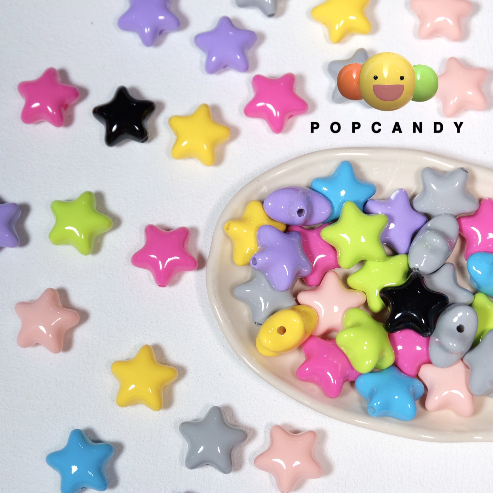 Aksesoris Gelang DIY Manik-manik Berlubang Lima Besar Berlubang Bintang Plastik Manik-manik Berbentuk Berbeda Macaron