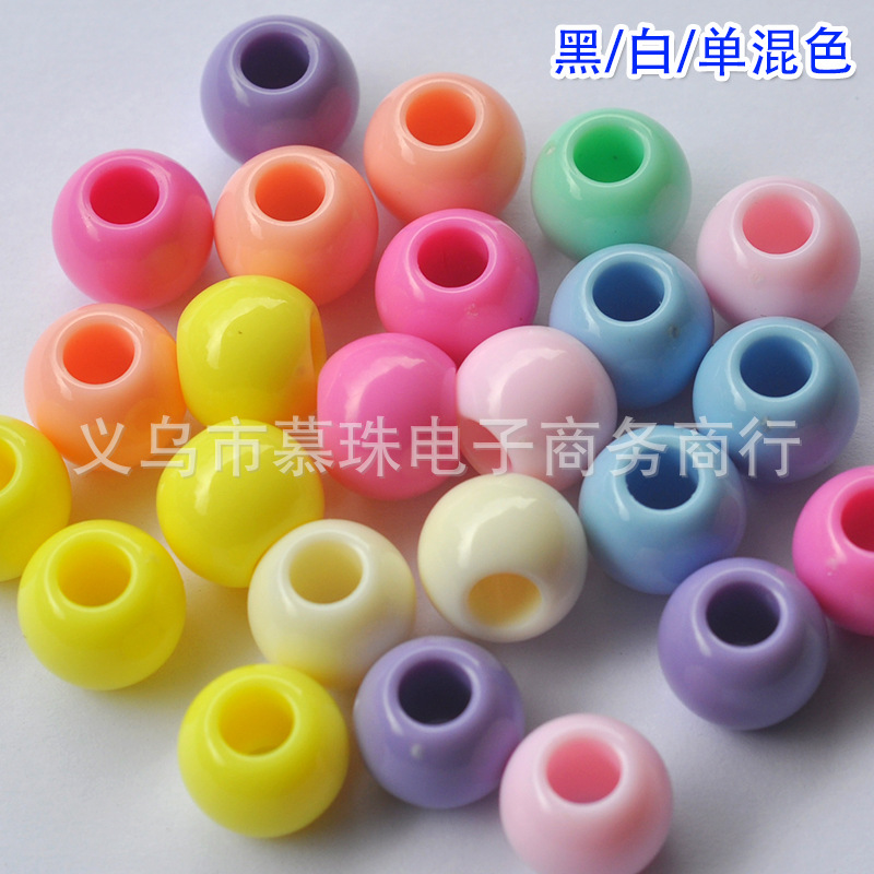 Manik-manik akrilik warna solid bulat ukuran lubang besar 10/12/14mm, warna musim semi, tali manik-manik untuk baju renang, rantai empeng, aksesoris manik-manik DIY