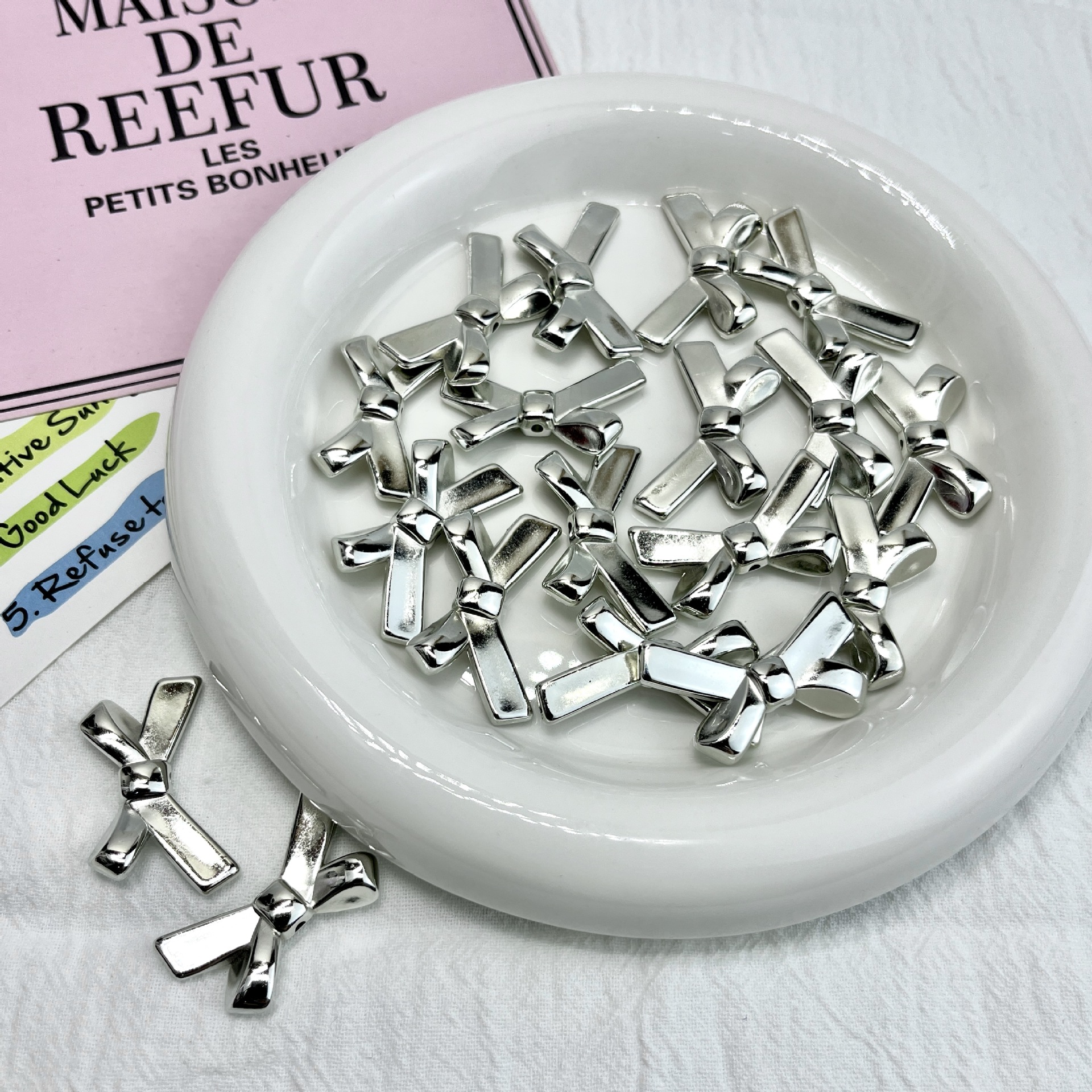 Electroplating perak busur lubang vertikal manik-manik akrilik diy mobil manik-manik gantung karet band tali rambut melalui lubang bahan perhiasan aksesoris