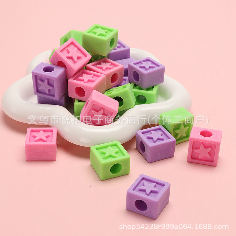 Aksesori DIY 12mm beads Kayu konstelasi wajah tersenyum pelangi manik-manik persegi ukiran laser menandai mainan molar bayi