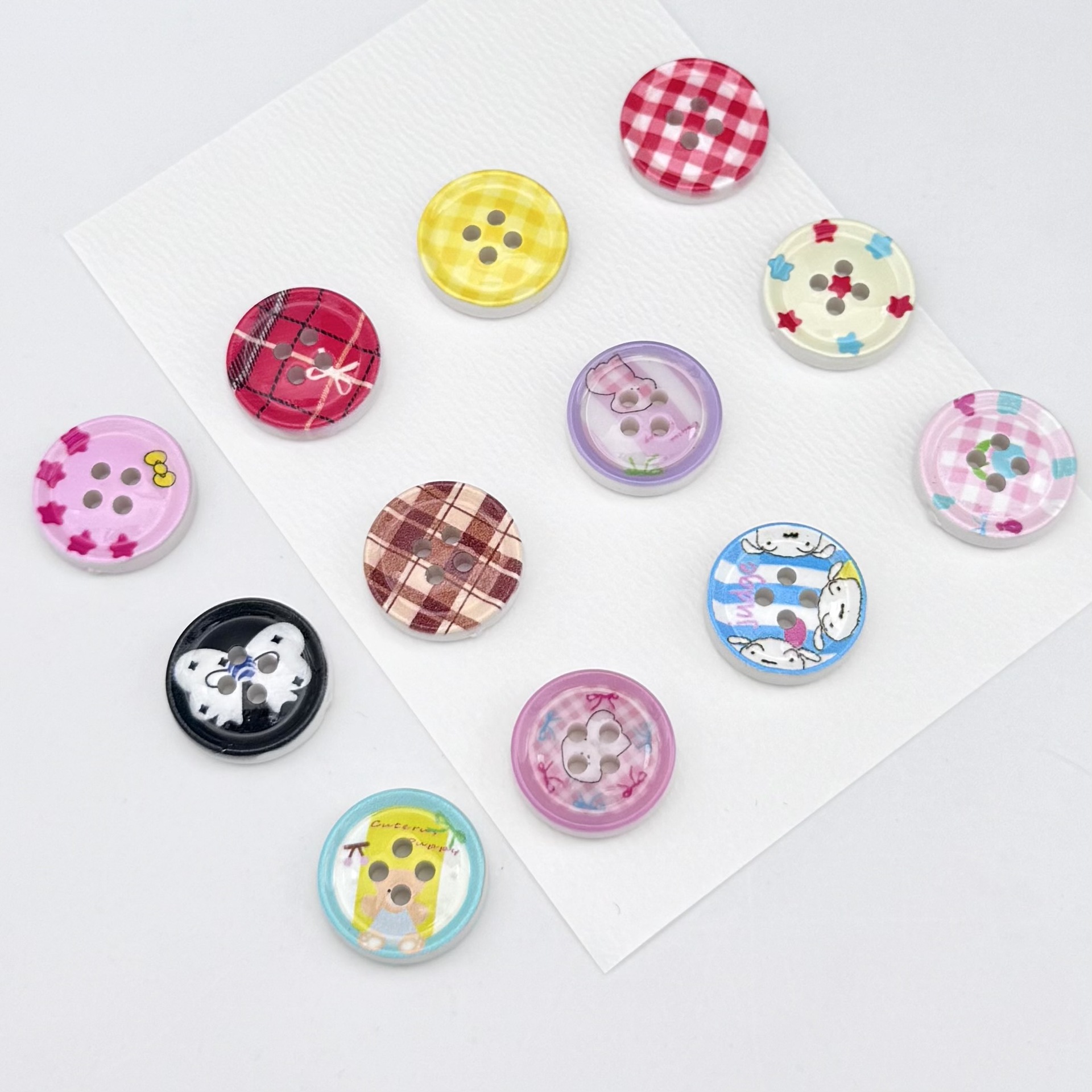 Kancing Empat Mata Bentuk Bulat Kartun Warna-Warni Motif Bintang Hewan Pita Kupu-Kupu Pakaian Wanita DIY Gesper Dekoratif