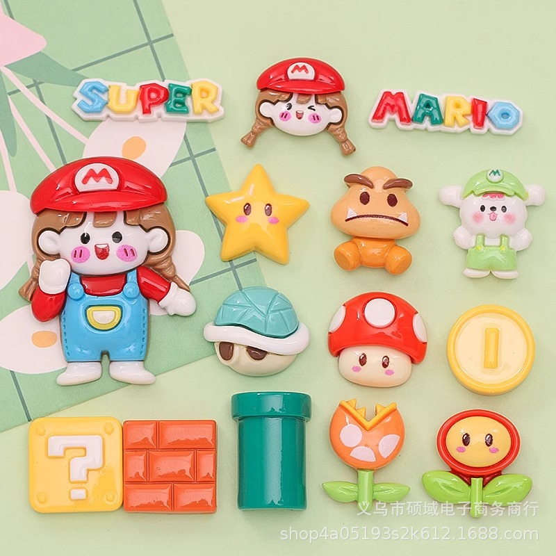 Permainan Kartun Klasik Mario Casing Ponsel Lem Krim DIY Transfit Hiasan Kepala Resin Aksesoris Aksesoris Lintas Batas