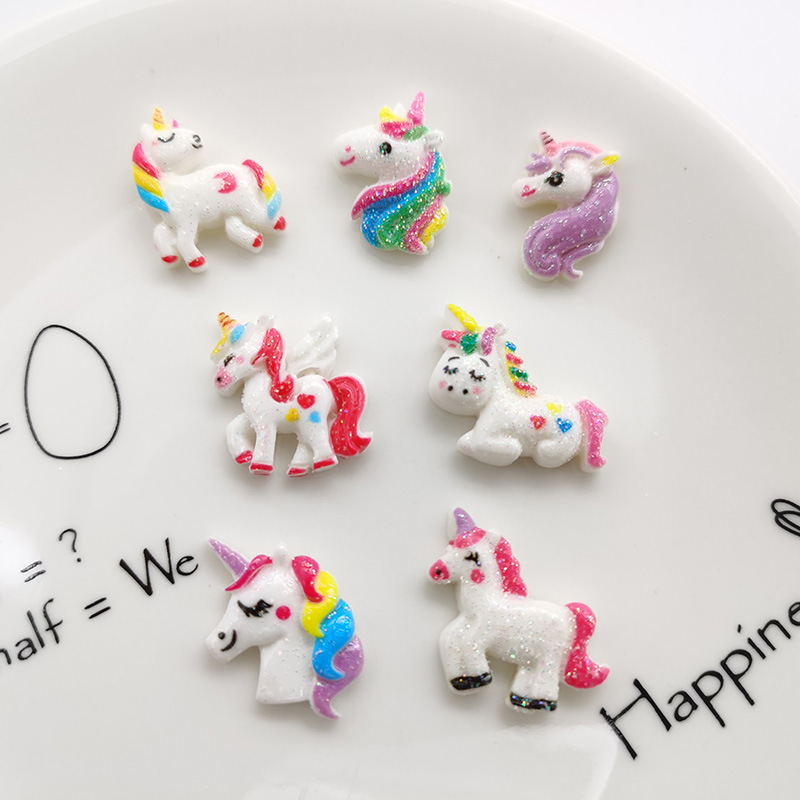 Glitter unicorn diy ikat kepala anak-anak karet aksesori perhiasan resin krim DIY sarung ponsel bahan kecantikan