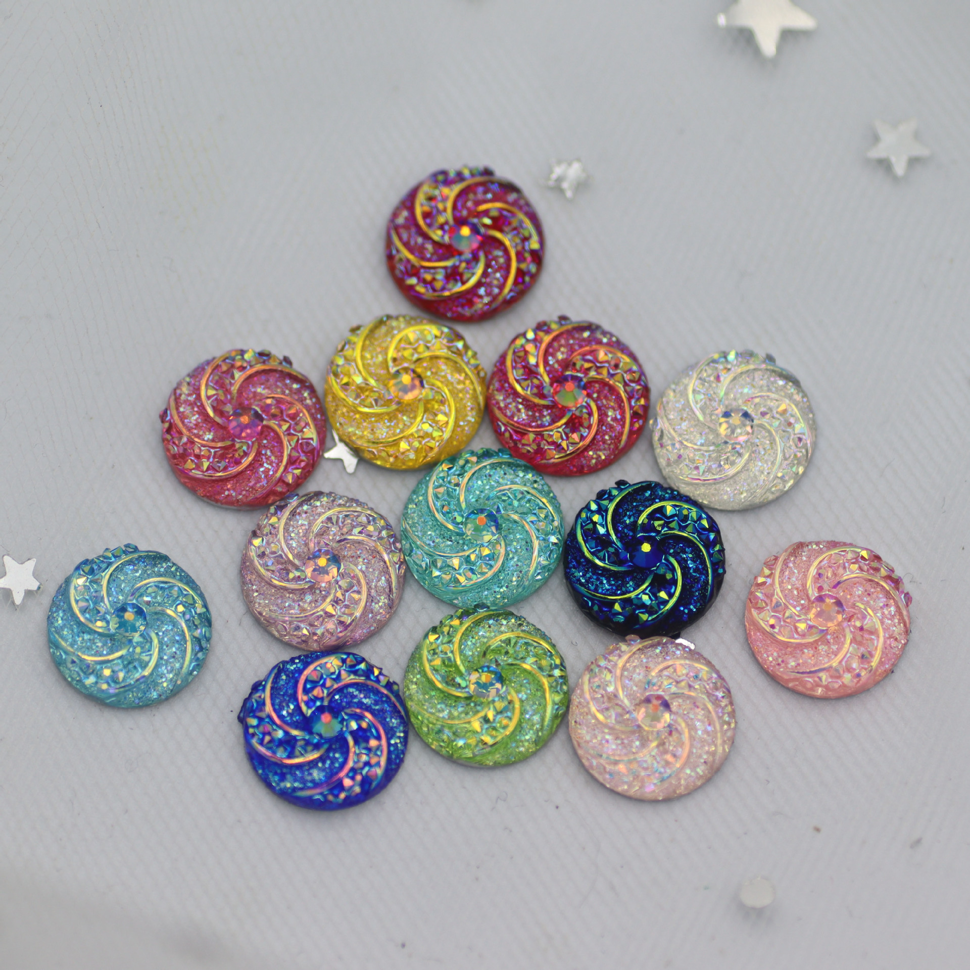 Baru 12mm kincir angin resin bulat bintang bor bawah datar anting cembung cekung diy aksesoris perhiasan