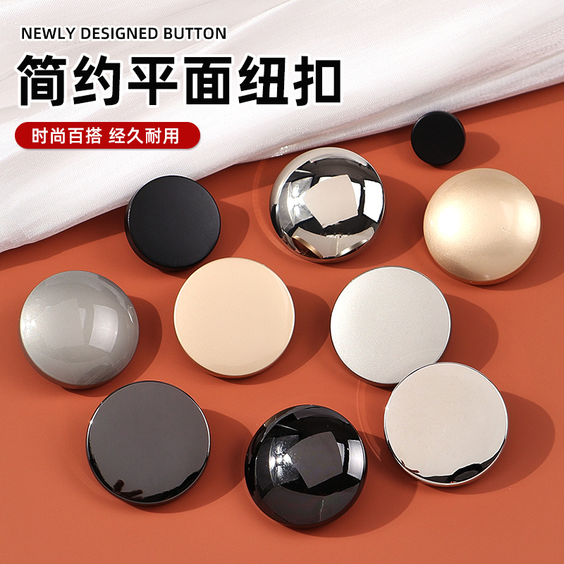 Aksesori dekorasi baju pria dan wanita, kancing logam datar, gesper sweater Semua cocok hitam kancing bulat