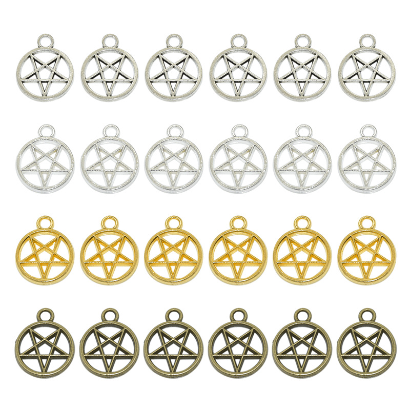 Aksesoris Perhiasan Paduan Panas Liontin Bintang Pentagram Bulat Dua Sisi Liontin Bintang Pentagram Aksesori DIY Buatan Tangan
