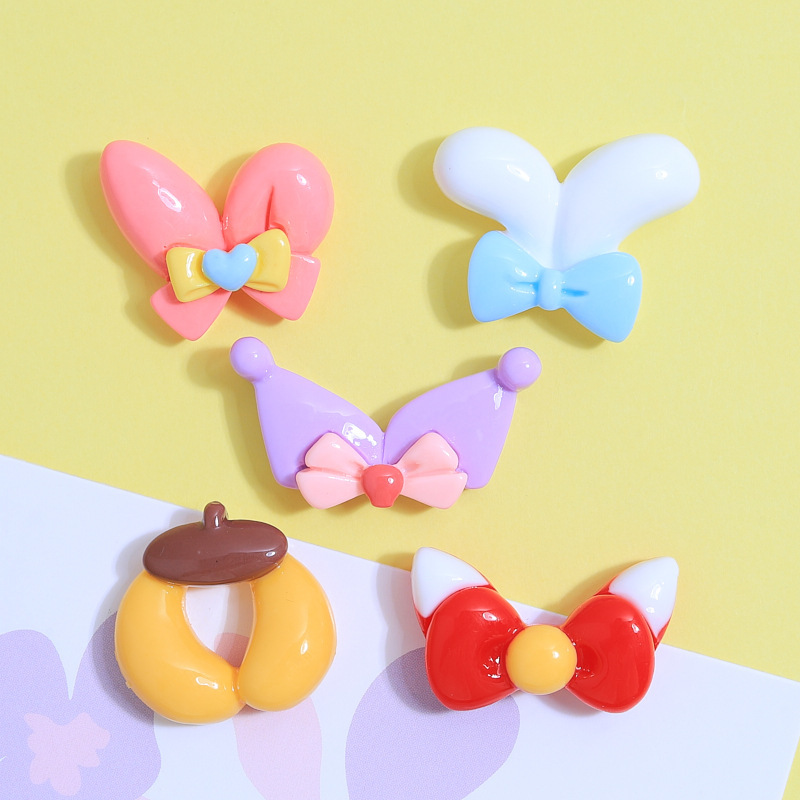 Casing ponsel telinga hewan kartun anak-anak, aksesori resin perhiasan jepit rambut hiasan kepala ponsel lem krim diy buatan tangan menyenangkan