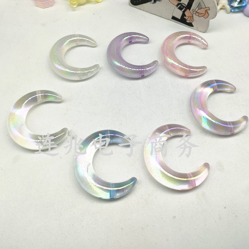Aksesori gantung mobil gantungan kunci tali ponsel hidup TikTok DIY manik-manik lubang ganda Bulan warna-warni akrilik