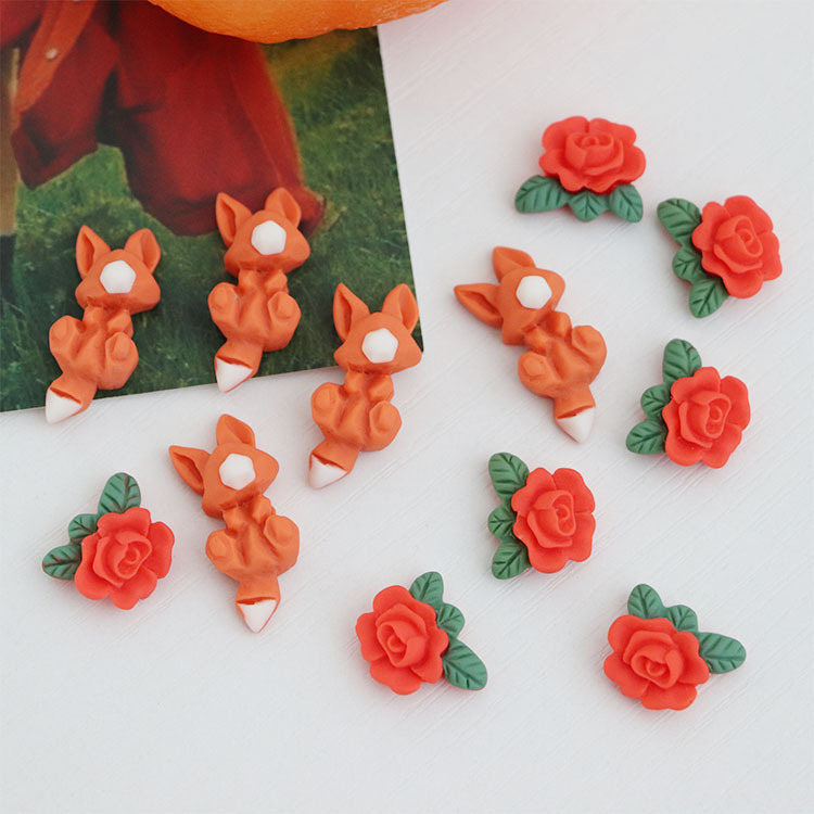 Dongeng rubah dan mawar resin muda dicat tiga dimensi DIY anting-anting bahan buatan tangan aksesoris