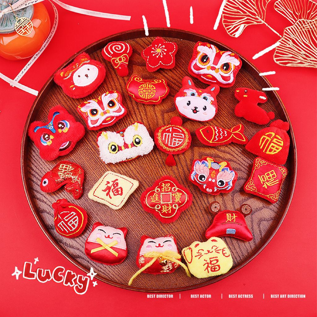 Aksesori mewah Tahun Baru tas keberuntungan kucing keberuntungan Xingshi sepatu diy dan kaus kaki bros Aksesori boneka merah meriah grosir