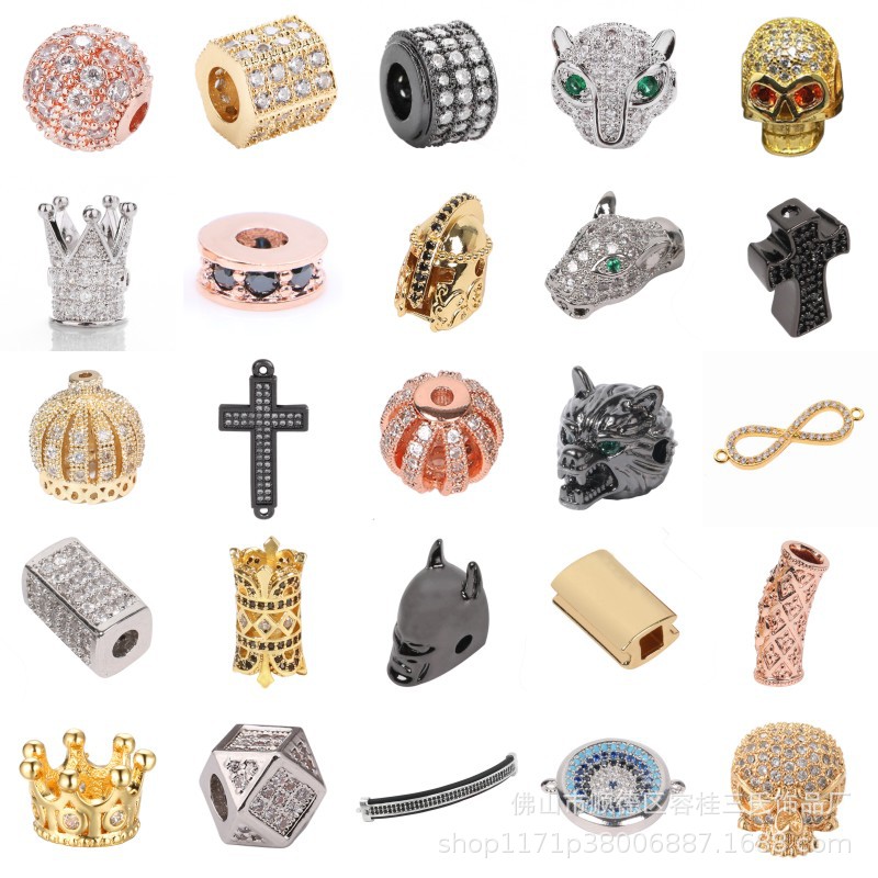 Aksesoris bertatahkan mikro grosir pabrik aksesori gelang diy mahkota manik-manik bulat Aksesori perhiasan zirkon Aksesori penjarak