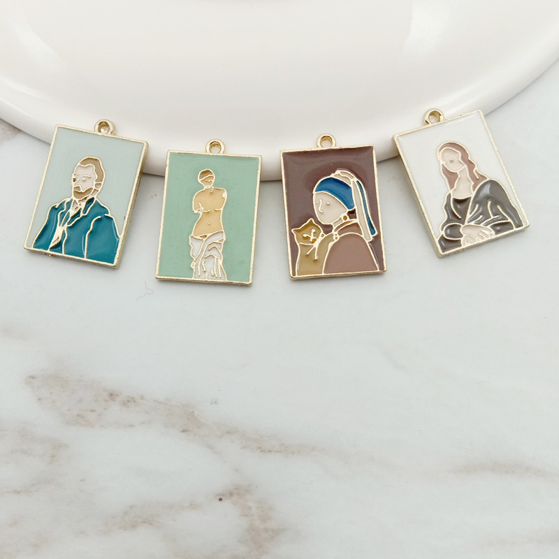 Aksesori perhiasan gaya Korea liontin Aksesori anting mural selebriti Monalisa bahan diy