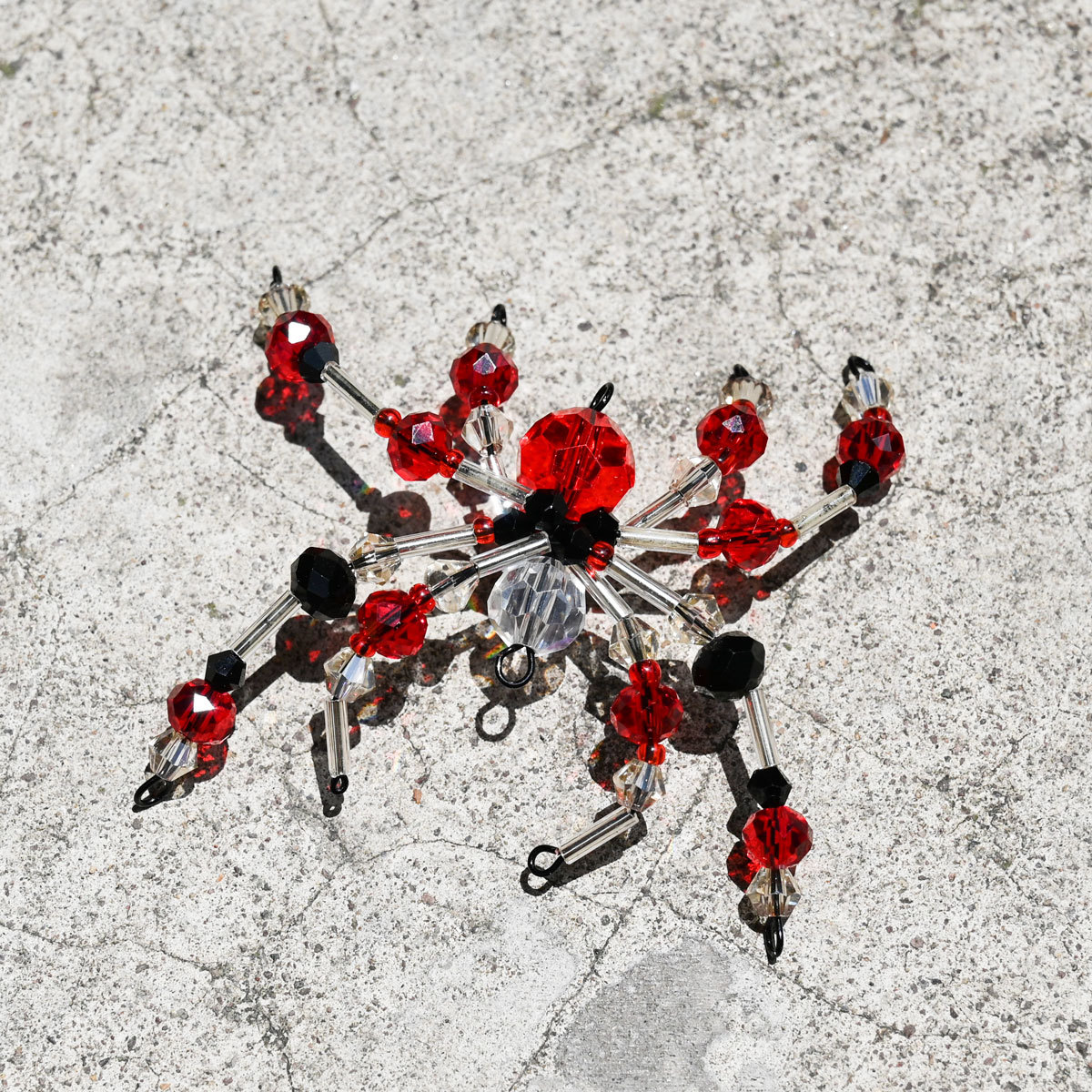 Aksesori Anting-anting Liontin Permukaan Terpotong Kristal Ornamen Laba-laba Besar Merah Hitam Halloween Model Baru Amazon Eropa dan Amerika