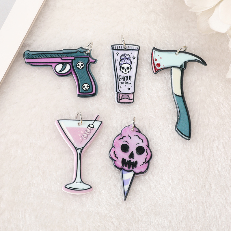 Cross-border diskon besar dua sisi akrilik Halloween pisau seram DIY anting-anting kalung gantungan kunci